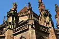 Собор славится обилием причудливых украшений сточных желобов, имеющихся только у немногих готических соборов. Среди прочего, имеется человеческая фигура, в которой вода вытекает наружу из голого зада[2] — предполагается, что задница была направлена каменотёсами в сторону резиденции епископа, задолжавшего им денег. Другая городская легенда гласит, что на строительство Фрайбургского собора жертвовали деньги все жители прилегающих к месту строительства домов; лишь один домовладелец отказался внести пожертвование. Именно к его дому и направлена одна-единственная фигура, расположенная задней частью туловища.