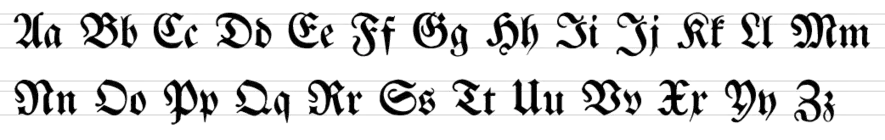 | Имя | Latin (Fraktur variant)[1] и latin (variante brisée)[1] |