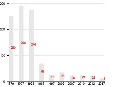 | 1879 | 1909[16] | 1928 | 1965 | 1997 | 2007[17] | 2010[18] | 2013 |