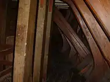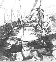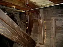 Палубные бимсы снизу подпирались диагональными стойками, всего их было 68. Палубный настил — из норвежской сосны, осмолённая палуба была чёрного цвета. Настил верхней палубы имел толщину 10 см, нижней — 7,5 см. Между бимсами верхней и нижней палуб находились три ряда пиллерсов. Вторую палубу поддерживал один ряд пиллерсов, опирающихся на кильсон, а бимсы юта покоились на двух рядах пиллерсов. Система была устроена так, что давление льда равномерно распределялось между всеми конструкциями[40].