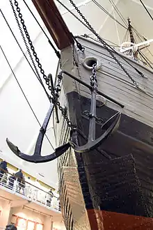 Форштевень был составлен из трёх дубовых брусьев и имел сечение 1,22 × 0,38 м. С внутренней стороны он был усилен дубовыми кницами и железными продольными связями. По форштевню проходил шпунт крепления обшивки, каждая доска имела собственное гнездо. Кроме того, снаружи форштевень был окован сегментными профильными скобами из железа, а ещё он был усилен плоскими железными шинами[38].