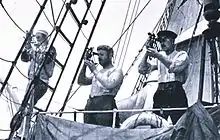 Парусное вооружение принималось как у марсельной шхуны. Мачты были довольно высокими, например, грот-мачта имела длину 24,5 м, не считая грот-стеньги длиной 15,5 м. Из-за этого дозорная бочка оказывалась на высоте 32 м над уровнем моря. Общая площадь парусов по проекту — 600 м²[22]. Стоячий такелаж — из стальных тросов, бегучий — пеньковый[37].