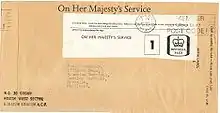 «Служебное» франкирование («Official Business» franking) — франкатура, напечатанная или наклеенная на почтовых отправлениях, предназначенных для служебного пользования национальных правительств (то есть правительств, у которых также имеется почтовая администрация), и в силу этого пригодная для почтового обслуживания без дополнительного платного франкирования[13]. В странах британского Содружества печатная франкатура содержит надпись «Official Paid» («Служебное. Оплачено») и применяется государственными ведомствами на почтовых штемпелях, цельных вещах, наклейках (виньетках), служебных марках, а также на отметках от руки и на машинных штемпелях.