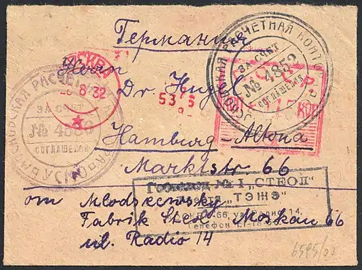 Франкировальные машины для обработки служебной корреспонденции в СССР начали использоваться с 1927 года[3]. Их устанавливали в почтовых организациях и в ведомствах непосредственных отправителей по договору с предприятиями связи.