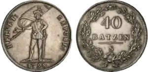 25 июня 1798 года был принят закон о начале выпуска монет Гельветической республики[1]. Закон от 19 марта 1799 года устанавливал следующие принципы денежной системы республики: