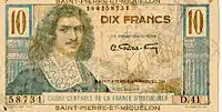 - Центральной кассы Заморской Франции с надпечаткой «Сен-Пьер и Микелон»: 5, 10, 20, 50, 100, 500, 1000, 5000 франков[2];