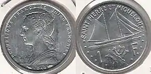- Коммерческой палаты Сен-Пьера и Микелона: 0,05, 0,10, 0,25, 0,50, 1, 2 франка;