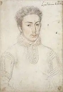 ![]() Мастерская Франсуа Клуэ. Франсуа де Вандом, видам Шартрский. 1555. Шантийи, музей Конде | |
