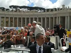 Франци́ск[5] (лат. Franciscus, итал. Francesco), до избрания — Хо́рхе Ма́рио Берго́льо (исп. Jorge Mario Bergoglio; род. 17 декабря 1936, Буэнос-Айрес) — 266-й папа римский. Избран 13 марта 2013 года. Первый в истории папа из Нового Света и первый за более чем 1200 лет папа не из Европы (после сирийца Григория III, правившего с 731 по 741 год)[6]. Первый папа-иезуит. Первый папа-монах со времён Григория XVI (1831—1846), состоявшего в ордене камальдулов[7].