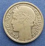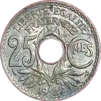 Для некоторых заморских территорий (например, Алжира) выпускались монеты, идентичные по дизайну французским, однако из другого металла. На территории Франции они хождения не имели.