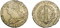 После принятия Конституции в 1791 году экю стали выпускать с легендой на французском языке, с датой «от обретения свободы». В 1795 году во Франции была введена десятичная система на основе франка. Старые экю находились в обращении до 1834 года; после этого название «экю» сохранилось за 5-франковой монетой[3].