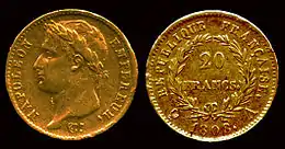 В 1803 году во Франции был установлен стандарт золотого содержания франка (так называемый «франк жерминаль») — 0,2903 г[10][15], который впоследствии получил широкое распространение в Европе. Тогда же вместо луидоров был начал выпуск золотых наполеондоров.