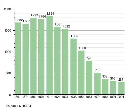 Население составляет 287 человек (2008 г.), плотность населения составляет 12 чел./км². Занимает площадь 24 км². Почтовый индекс — 10080. Телефонный код — 0124.