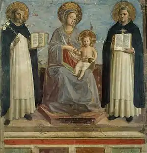 - «Мадонна с младенцем, святыми Домиником и Фомой Аквинским» (1430. Фреска. Государственный Эрмитаж, Санкт-Петербург)