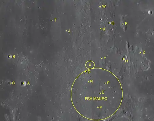 - Район кратера Фра Мауро был целью посадки лунного модуля «Аполлон-13».