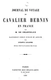 - Fréart de Chantelou, Paul (1885). Journal du cavalier Bernin en France (in French), edited by Ludovic Lalanne. — Paris: Gazette des Beaux Arts. — Copy at Internet Archive. Copy at Gallica. Reprinted 1981. — Aix-en-Provence: Pandora. — ISBN 9782863710265