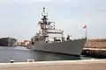 Фрегаты типа «Балеарес» — серия из пяти фрегатов, построенных для ВМС Испании в 1970-х годах. Корабли являются модифицированной версией американских фрегатов типа «Нокс». Основное отличие заключаются в замене ЗРК Sea Sparrow и средства базирования противолодочного вертолёта на ЗУР семейства «Стандарт» и связанные с ними радары. Корабли получили поисковую 3D-РЛС SPS-52 и одну РЛС подсветки цели SPG-51 для ЗУР средней дальностиStandard SM-1 с 16-ракетной однобалочной пусковой установкой Mk22. Низкочастотный гидролокатор дальнего действия SQS-26 был заменен среднечастотным гидролокатором SQS-23G, на транце установлены два торпедных аппарата Mk25 для торпед Mk 37. Гидролокатор переменной глубины SQS-35 сохранился[3].