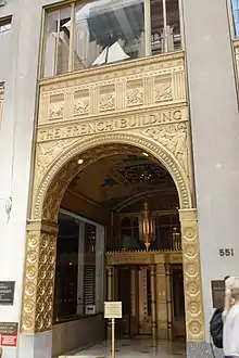 Согласно докладу Комиссии по сохранению достопримечательностей Нью-Йорка (1986), «двери лифта, покрытые позолоченной бронзой ... являются важнейшим художественным произведением в здании (в наличии 13 одинаковых входных групп). На каждой двери по 8 панелей.