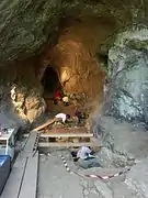 Раскопки в «пещере орешника» летом 2005 года