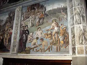 ![]() Святой Фридиан совершает крещение на реке Серкио, церковь святого Фридиана, Лукка, Италия | |