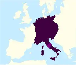 Осенью 1211 года Оттон перешёл границу Сицилийского королевства. Папа немедленно отлучил его от церкви, что не возымело никаких последствий, и Оттон успешно дошёл до юга Калабрии. В сентябре 1211 года германские князья, поддерживавшие папу, провозгласили императором Фридриха, однако весть об этом пришла на юг Италии лишь через месяц, Оттон и Фридрих получили её одновременно. Оттон поспешил в Германию вместо того, чтобы завершить захват Сицилийского королевства. Фридрих же дождался прибытия папского легата и в феврале короновал своего сына Генриха, не достигшего и года, сицилийской короной, назначив регентом Констанцию[29]. После этого он тоже отправился в Германию и по пути посетил Рим во время Пасхи 1212 года. На протяжении всего пути его подстерегали сторонники Оттона: по Тирренскому морю курсировал пизанский флот, с суши угрожали войска Пьяченцы, переправу через Ламбро охраняли миланцы, альпийские перевалы сторожили войска баварского герцога[30].