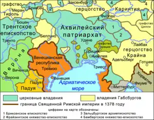 ![]() Ареал фриульского языка в Западной Европе | |