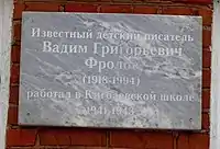 28 января 2015 г. в селе Кигбаево на здании школы, в которой Вадим Фролов в военные годы работал директором, была установлена мемориальная доска. Открытие доски сопровождалось праздником, в котором участвовали педагоги и учащиеся школы, а также приехавшие из Петербурга сыновья писателя Александр и Валерий и главный редактор РИИИ РАН Е. П. Щеглова[3].