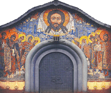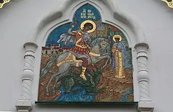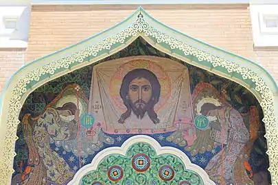 - Церковь Св. Троицы в г. Балаково Саратовской губернии. Наружные мозаики. (1911 г.; худ. И. О. Чириков; арх. Шехтель Ф. О.);