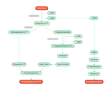 Промежуточные продукты метаболизма фруктозы также могут активировать гликолитический путь, входя в него через глицеральдегид-3-фосфат и дигидроксиацетонфосфат, что может быть особенно пагубным при онкологических заболеваниях из-за эффекта Варбурга.[32] Транзиторное внутриклеточное истощение фосфатов из-за чрезмерного фосфорилирования фруктозы фруктокиназой также может влиять на пуриновый метаболизм, приводя к повышенной выработке мочевой кислоты. Мочевая кислота, в свою очередь, может способствовать липогенезу, а также выступать посредником в других патологических процессах, которые играют важную роль в развитии метаболического синдрома, высокого артериального давления и подагры.[33] Отрицательные метаболические эффекты фруктозы усугубляются ее неспособностью, в отличие от глюкозы, вызывать чувство насыщения. Это может быть причиной менее контролируемого или чрезмерного потребления пищи, богатой фруктозой.[34]