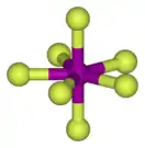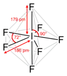 - С некоторыми фторидами (AsF5, SbF5, BF3)[5] образует комплексные соединения, которые вполне устойчивы до температуры около 140 °C. Предположительно, структура таких соединений ионная: IF6+·AsF6−.