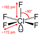 - Под действием ультрафиолетового излучения вступает во взаимодействие с PtF6, при этом образуется смесь ClF6PtF6 и ClF4PtF6[2]: