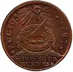 Дизайн монеты разработал Бенджамин Франклин; в нижней части монеты помещено сообщение «Mind Your Business», которое является игрой слов — или «не твоего ума дело», или напоминание обладателю монеты «думай о бизнесе», пока время «убегает». Этот же дизайн был также использован на «континентальном долларе» (выпускался как в виде монет без обозначения номинала, так и в виде бумажных купюр с разными дробными номиналами) в феврале 1776[3].