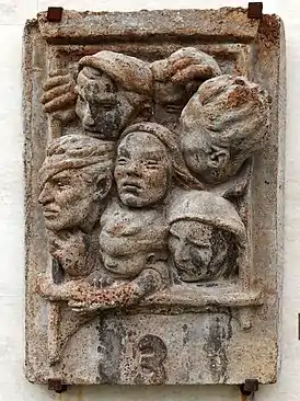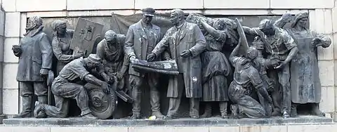 ![]() В вагоне третьего класса, 1935, рельеф Музей социалистического искусства, (София) | |