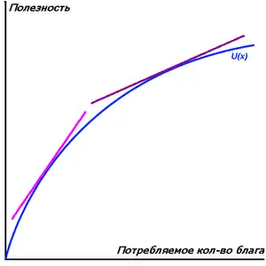 Свойство убывающей предельной полезности является следствием вогнутости функции полезности. Если функция дважды дифференцируема, то свойство означает, что вторая частная производная такой функции отрицательна.