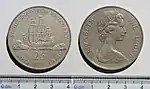В 1973 году был начат выпуск памятных медно-никелевых и серебряных монет в 25 пенсов (в 1978 году номинал был указан в кронах, «One crown»), а в 1984 году — в 50 пенсов. Был также начат выпуск памятных монет и других номиналов из различных металлов (золото, серебро, платина) — 2, 5, 25 фунтов.
