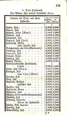| Венский, австрийский или дунайский | Fuß | 0,316081 | |