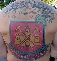 Некоторые болельщики посредством нанесения на тело татуировок выражают преданность «своему» клубу и идеям футбольного братства. В большинстве случаев на такой татуировке могут быть изображены: герб футбольного клуба, эмблема фанатской группировки, талисман команды и др. Как правило, татуировка сопровождается кратким лозунгом и выполняется в цветовой гамме, соответствующей цветам клуба. В среде футбольных хулиганов нередко можно встретить тату в форме кельтского креста, изображения рун, различную пиратскую символику. Также довольно часто на теле фанатов можно увидеть различным образом стилизованную английскую аббревиатуру A.C.A.B. (All Cops Are Bastards, «все полицейские — ублюдки»); таким образом, носитель такой татуировки выражает несогласие с мерами, применяемыми силовыми структурами, направленными на искоренение насилия, связанного с футболом.