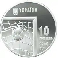 на украинской монете номиналом 10 гривен.