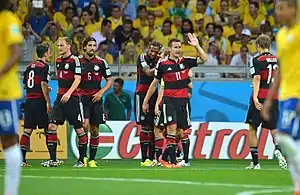 Победа Германии позволила ей попасть в четвёртый раз подряд в число призёров чемпионата мира, а также в восьмой раз попасть в финал чемпионатов мира[28]. Сборная Германии сыграла 12-й полуфинал в своей истории[34] и стала первой командой, забившей 7 мячей в полуфинале чемпионата мира[28][33][42]: ранее в 1954 году на чемпионате мира немцы забили 6 мячей сборной Австрии (столько же мячей забивали полуфиналисты чемпионата мира 1930 года). Германия забила пять голов к 29-й минуте, которые стали самыми быстрыми в матче чемпионата мира, и установила рекорд по счёту в первом тайме. Хотя крупнейшая победа на чемпионате мира была одержана немцами в 2002 году над Саудовской Аравией, к перерыву немцы там вели только 4:0[34]. Как минимум 5 голов к перерыву пропускали только сборные Заира от Югославии и Гаити от Польши на чемпионате мира 1974 года[43][44]. Благодаря семи забитым голам у сборной Германии стала лучшая разница забитых и пропущенных мячей по сравнению с 28 другими странами-участницами чемпионатов мира[28].