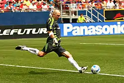 Футбольный удар (англ. soccer kick или (англ. soccer ball kick, порт. tiro de meta) — вид удара ногой, который применяется в спортивных играх (футбол, регби) для задачи ускборсо соло спортивных единоборствах (смешанные единоборства, вале-тудо, пурорэсу) он используется для нанесения физического вреда сопернику, когда он лежит на ринге, стоит на коленях или пытается встать[1]. Подобная техника впервые была применена в UFC в 1993 году, когда Жерар Гордо подобным ударом победил Тейла Тули, выбив ему зуб[2]. Едиными Правилами MMA (англ. Unified Rules of Mixed Martial Arts) подобные удары в настоящее время запрещены как опасные для жизни, хотя их не запрещают организации наподобие Pride Fighting Championships.
