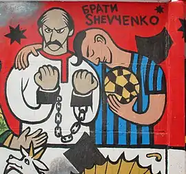Граффити, на котором изображены украинские писатель Тарас и футболист Андрей Шевченко (Харьков, Украина)