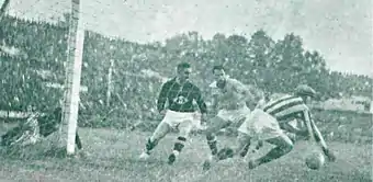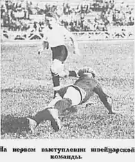 - 13' — Александр Старостин в центре поля промахивается по мячу, что приводит к выходу Бутусова к воротам. Скоростные качества Ал. Старостина позволили ему догнать несколько замешкавшегося Бутусова и ликвидировать угрозу;