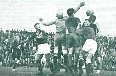- 20' — следует пас из глубины на Николая Старостина, находящегося в офсайде. Но защитник Ежов, пытавшийся слёту отбить мяч, срезает его. Н.Старостин подхватывает мяч, выходит к воротам и сильным ударом мимо вышедшего Соколова сравнивает счёт — 1:1. Срезка Ежова не была особенно заметной и многие зрители усомнились в правомерности взятия ворот ;