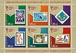 - Почтовый блок форматом 102х71 мм, формат марки в блоке — 30х42 мм, на марке изображён официальный талисман Чемпионата мира по футболу FIFA™ — волк по имени Забивака™[43].