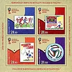 Почтовый блок «Чемпионат мира по футболу FIFA 2018 в России™»[Комм 10][22][27][26]. | 100,00 руб. |