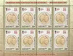 - Марки напечатаны на малых марочных листах с художественно оформленными полями (4×4) из 7 марок и 9 купонов: формат марочного листа — 202×145 мм; формат каждой марки — 42×30 мм; тираж марки — 220 000 экземпляров (220 000 малых марочных листов)[41].