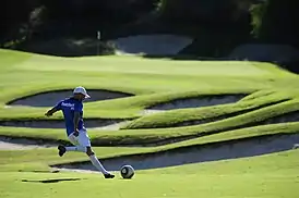 Футго́льф (от англ. football и англ. golf) — вид спорта, являющийся производным от гольфа и футбола. Игрок должен пройти поле с 9 или 18 лунками, стараясь загнать футбольный мяч в каждую из них за наименьшее число ударов. Игра проводится по собственным правилам, утвержденным Международной федерацией футгольфа (FIFG). Соревнования проходят на полях, соответствующих требованиям FIFG.