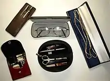 В зависимости от предназначения существуют футляры для очков, украшений, монет, перьевых ручек, ключей (смотри ключница), фотоаппаратов или маникюрных наборов.