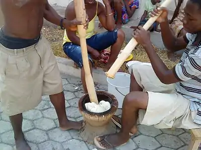 Приготовление фуфу в Гане