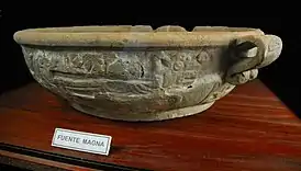 Фуэнте Магна — керамическая чаша каштаново-коричневого цвета, диаметром около 1 метра, вероятно религиозного назначения. Внутри и снаружи имеет рисунки с зоологическими мотивами, антропоморфными фигурами и прямоугольными спиралями[1]. Кроме того, Фуэнте Магна содержит тексты на двух языках. Все знаки прочерчены, видимо, уже после изготовления чаши. Одни из них сделан знаками, напоминающими клинопись. Знаки второй группы не поддаются идентификации, но в них, возможно, присутствует влияние той же «клинописи»[4][5].